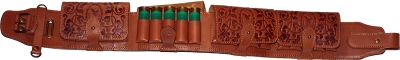 0601 Патронташ однорядный кожаный закрытый с тиснением 12 к*20 патронов